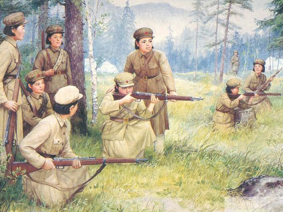 指导新兵训练。在朝鲜的书中是这样描述金正日的:“历史上出现过许多伟人、名将和名人……但是像金正日将军这样在巍峨的民族圣山上诞生、以盖世无双的游击队名将为父母的游击队之子是却从未有过的。的确这是超常家世中的空前绝后的伟人诞生……”