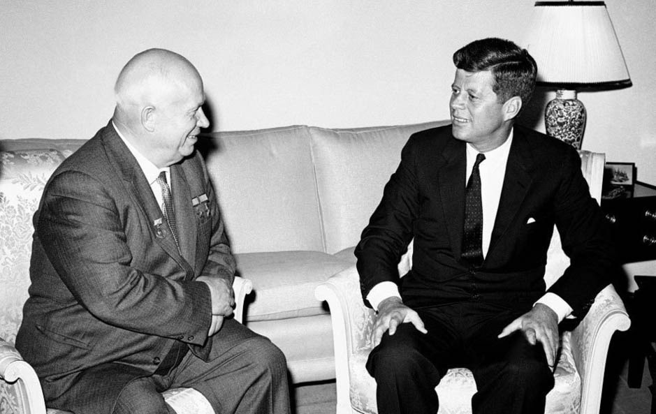 1961年6月3日和4日 肯尼迪当选美国总统后,赫鲁晓夫于1960年11月10日发出了私人贺电,表示愿意同他就一切悬而未决的问题进行谈判。肯尼迪也提出了“敌对国家”“重新开始寻求和平”的主张。1961年6月3日和4日,肯尼迪和赫鲁晓夫在维也纳举行会谈。会谈涉及禁止核试验、柏林等问题。