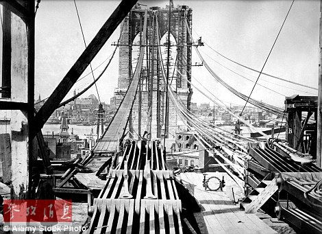 布鲁克林大桥的施工时间接近14年,于1883年向公众开放。