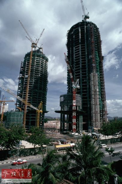 1995年马来西亚吉隆坡双子塔建设中期,每一座塔都有88层楼。