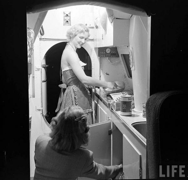 在机上厨房烹饪食品。